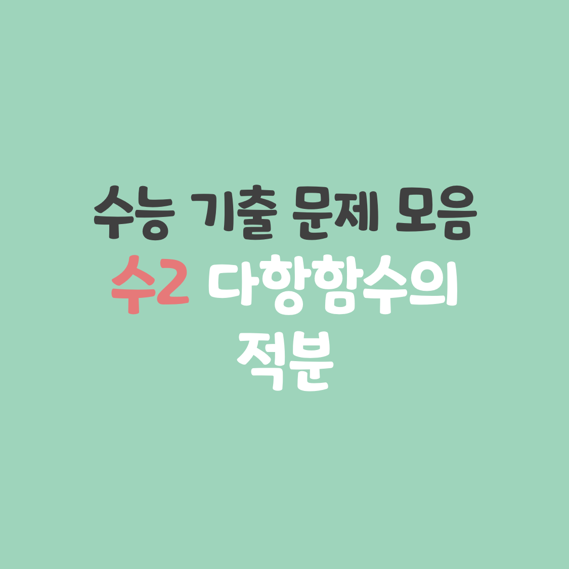 수능 기출 문제 모음 중 수2의 다항함수의 적분 과정입니다. 2016년~2022년 까지의 수능 기출 문제와 모의 평가 중에 총 50문제를 모아봤습니다. 다항함수의 적분 과정은