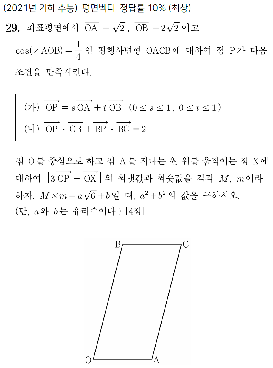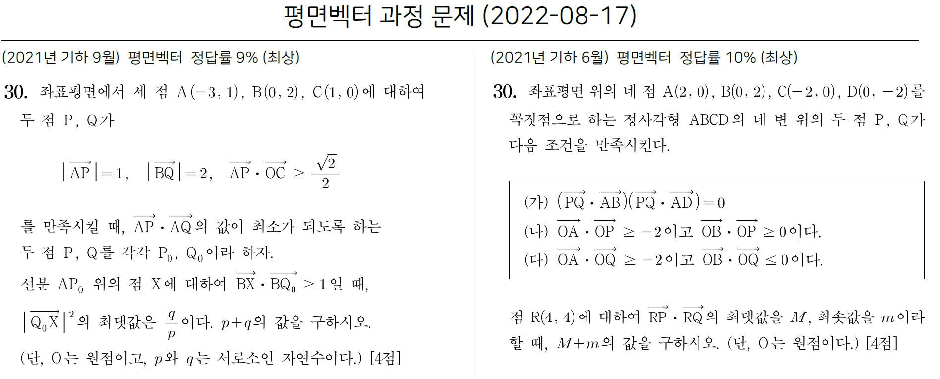 벡터는 익숙해지지 않으면 어려운데, 위치 벡터와 벡터의 내적가 매우 중요하니 반복해서 학습하시길 추천드립니다. 위치벡터와 벡터의 내적을 잘 활용하면 난이도가 높은 문제들도 푸실 수 있습니다.
