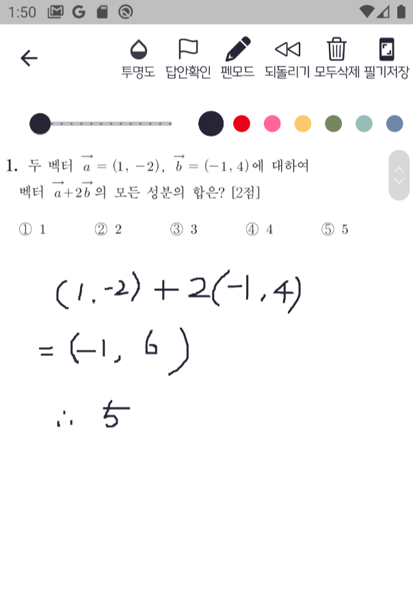상세 풀이 페이지에서 필기장에 들어가면 직접 손이나 펜을 통해 필기하며 문제를 풀 수 있습니다.